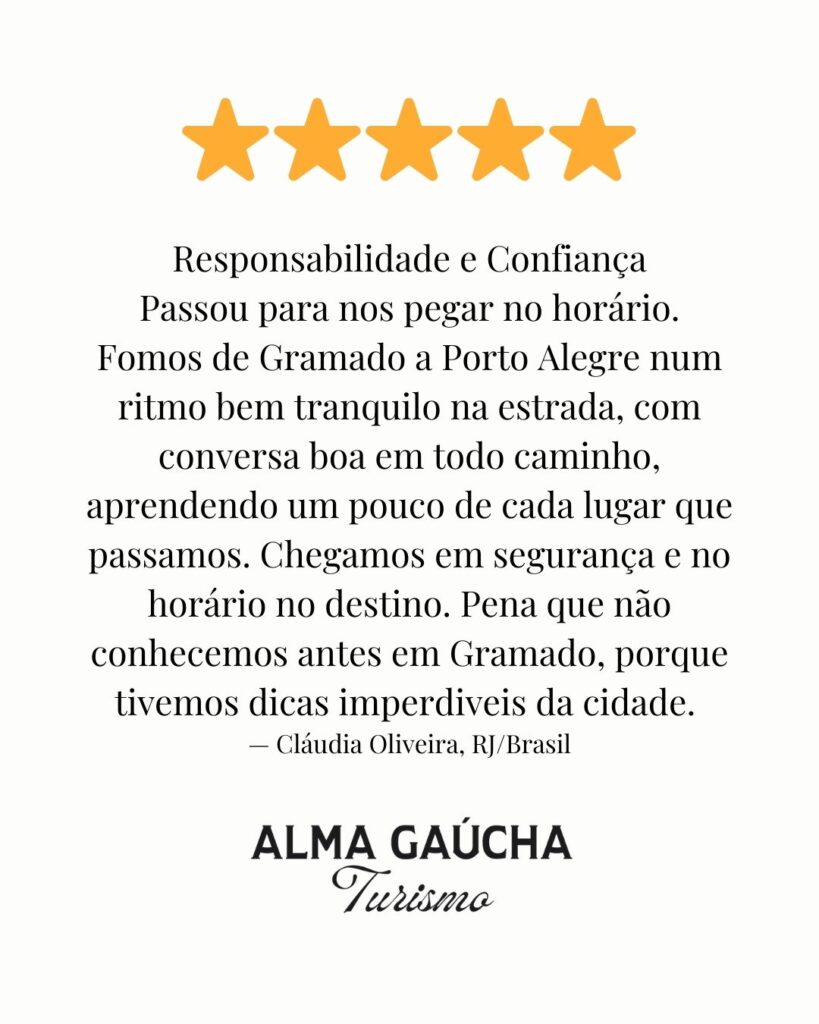 Veja o que dizem sobre viver a Serra Gaúcha com a Alma Gaúcha Turismo.
